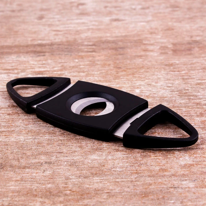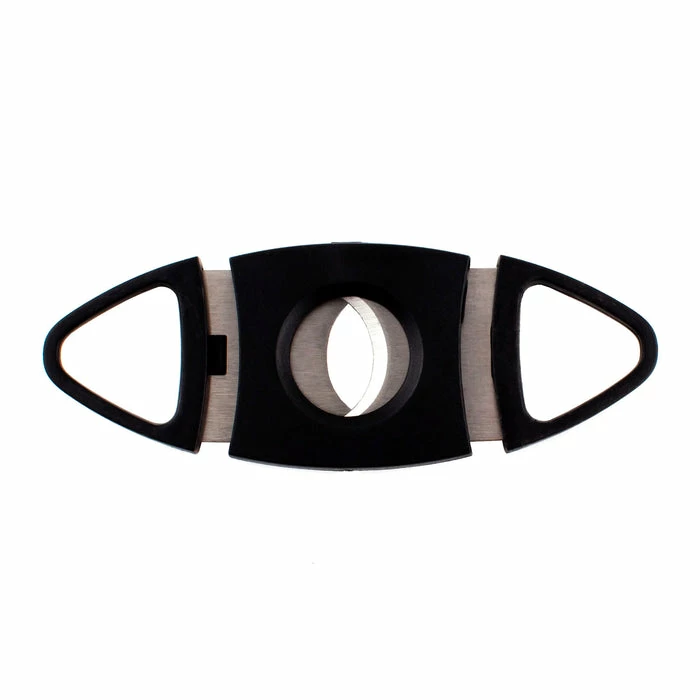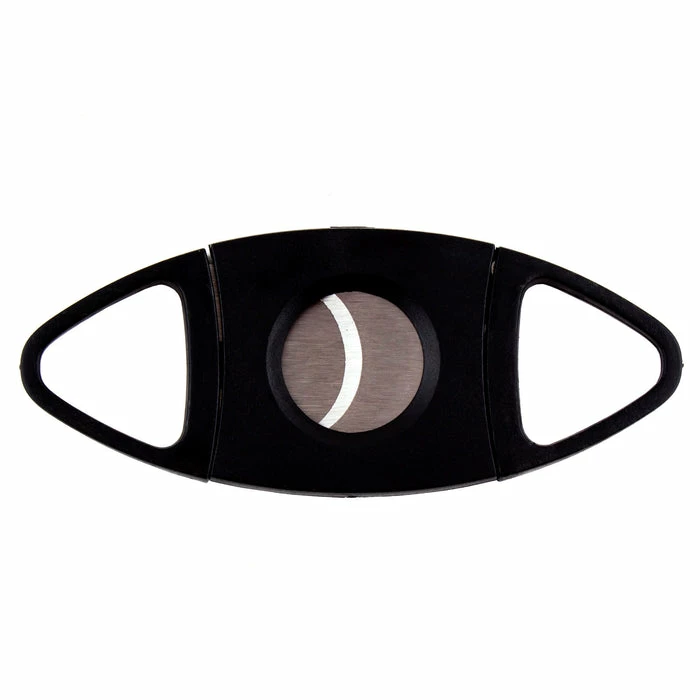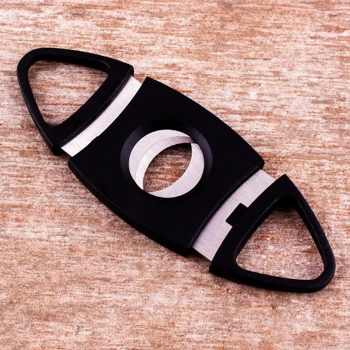 This 54 Ring Gauge 2 Stainless Blade Cigar Cutter was designed to provide a clean chop on your favorite cigars up to a thick 54 ring gauge. It is very lightweight, sturdy, and easy to use. It is made of plastic and measures 3.75″ in length.Â