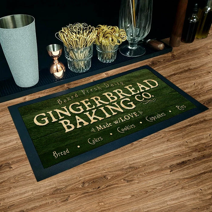 Service mats add a great utility to bar and kitchen tops by protecting them from splatters and spills during high traffic service. The durable rubber matting on the bottom and framing the sides will hold the mat securely in place. This holiday inspired design will definitely bring the perfect decor element to your bar or kitchen. These mats can also be used as place settings.