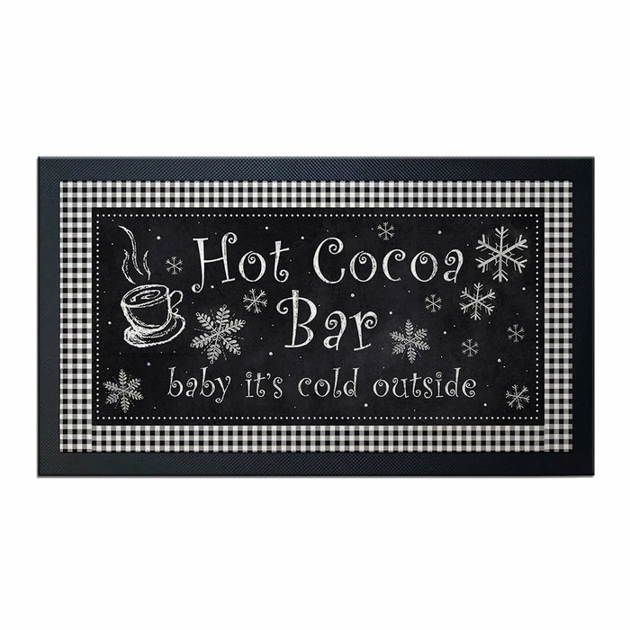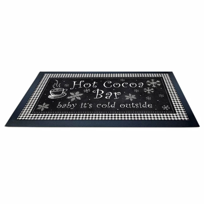 Service mats add a great utility to bar and kitchen tops by protecting them from splatters and spills during high traffic service. The durable rubber matting on the bottom and framing the sides will hold the mat securely in place. This holiday inspired design will definitely bring the perfect decor element to your bar or kitchen. These mats can also be used as place settings.