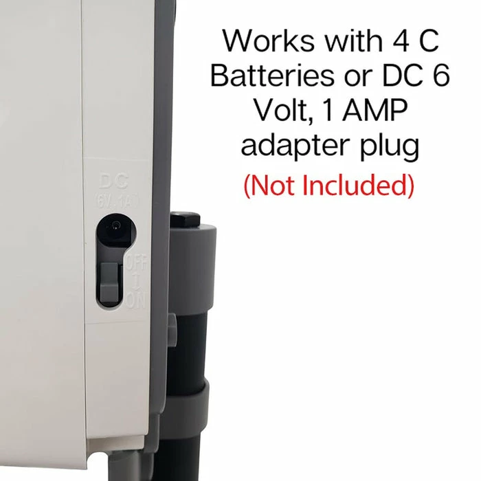 - Works with either (4) C Batteries (1.5V) or DC 6 Volt, 1 AMP (6V, 1A) adapter plug. Batteries or the cord are not included.