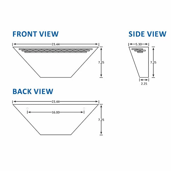 - Dimensions: 24″ L x 10″ H x 5″ D