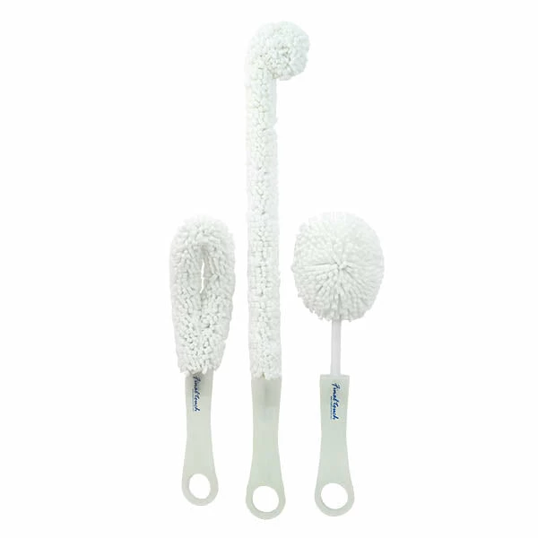 Every kitchen needs a good set of glass cleaning brushes, and this trio is a must have. These flexible brushes are perfect for hand washing all of your delicate glassware and fine crystal. All 3 are made of synthetic materials that will not scratch or damage glasses, and that keeps bacteria to a minimum. Can be used for decanters, fluted glasses, wine glasses, vases, baby bottles, beer mugs, water bottles, travel coffee mugs, or any difficult to clean item.