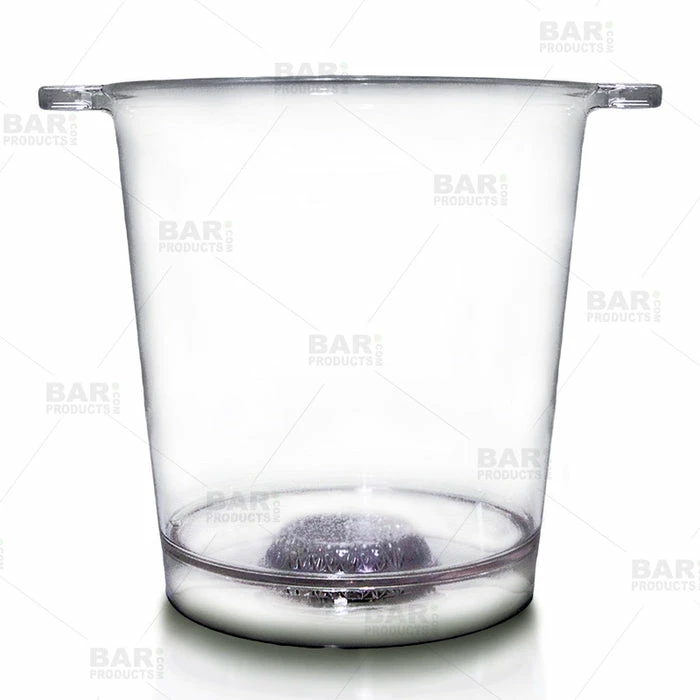 Add a little color to your establishment with our stylish LED Ice Bucket. This is a durable plastic ice bucket with changeable LED light displays. Each LED light show can be changed with a click of a button on the base of the ice bucket. The various bright light shows bring life to an otherwise lackluster bar top object. The LEDs colors consist of vivid red, blue, green, and yellow. Holds 5.63 quarts.