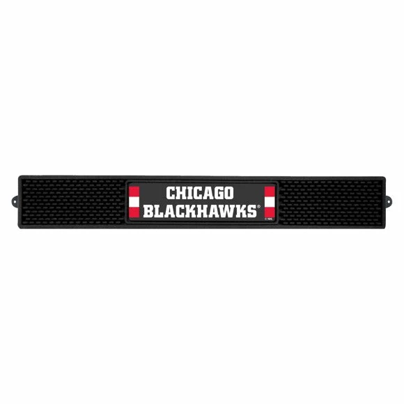 This durable rubber mat is specially designed to keep your bar area and rail protected from spills and excess liquid. With enough room to neatly pour multiple drinks. This Drink Mat comes complete with a textured surface for non-slip traction and featuring your favorite NHL team’s logo on a black background. Easy to clean with a sleek design and affordable rubber mats. Dimensions (Overall): 1.0 inches (H) x 3.25 inches (W) x 24.0 inches (L). Hand Wash Only. Made in the USA