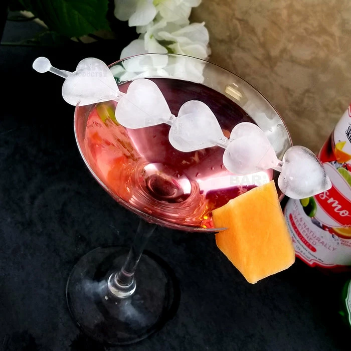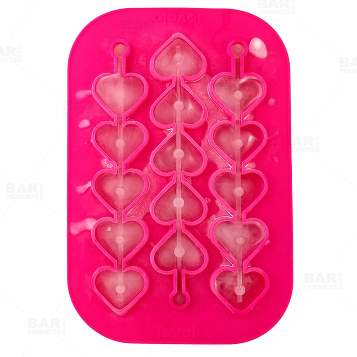 This Swizzle Stick Ice Mold Tray will certainly add an exciting edge to your next cocktail party! This 1 piece, 3 slot silicone ice mold is designed to form 5 perfect heart shaped ice cubes on a stick! Perfect for stirring and chilling short cocktails.