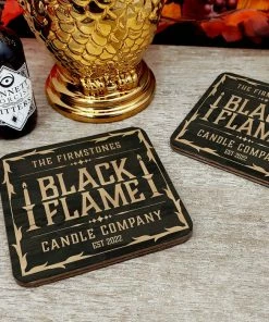 BarMan Wooden Square Coasters – Customizable – Halloween Black Flame Candle Company – Set Of 4