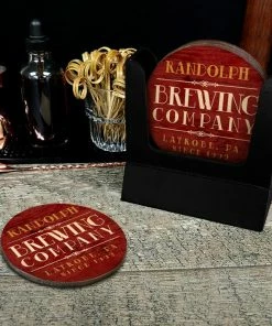 BarMan Wooden Round Coasters – Customizable – Brewing Company – Set Of 4