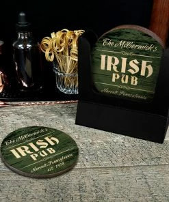 BarMan Wooden Round Coasters – Customizable – Irish Theme – Set Of 4
