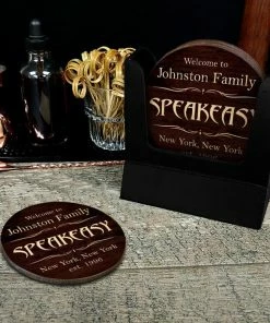 BarMan Wooden Round Coasters – Customizable – Speakeasy Theme – Set Of 4