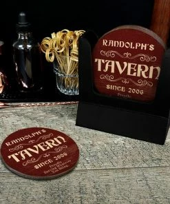 BarMan Wooden Round Coasters – Customizable – Tavern Theme – Set Of 4