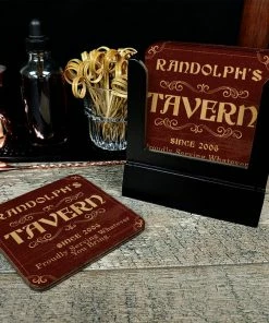 BarMan Wooden Square Coasters – Customizable – Tavern Theme – Set Of 4