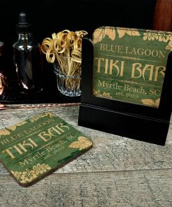 BarMan Wooden Square Coasters – Customizable – Tiki Theme – Set Of 4